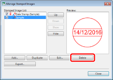 You cannot delete the preset stamped images that were automatically registered during installation.
