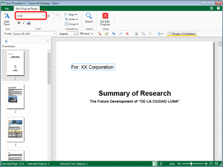 Fonts cannot be specified with the tool button displayed in the toolbar for the Annotations Mode.