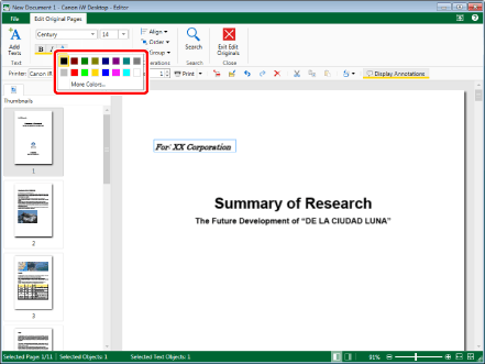 When you want to use a color that is not available in the color list, select [More Colors] to set a color that is not listed in [Font Color] on the [Color] dialog box.