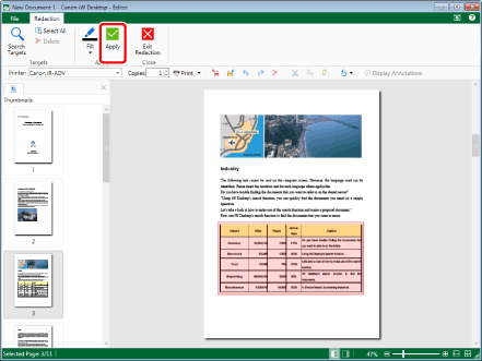 (Select All) displayed on the toolbar to perform the same operation. If tool buttons are not displayed on the toolbar of Desktop Editor, see the following to display them.For more information on applying redactions, see the following.