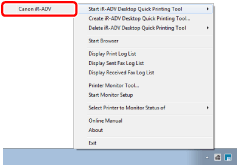 Right-click (Main) on the Taskbar, select [Start iR-ADV Desktop Quick Printing Tool], and select Quick Printing Tool to start.