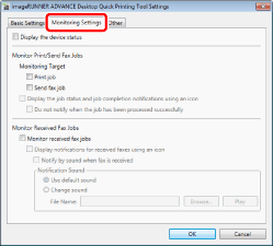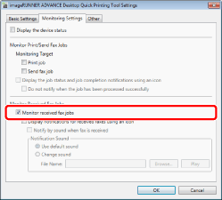 Only the reception of faxes that have had their information retrieved in the Quick Printing Tool can be monitored. Device information is automatically retrieved when Desktop Monitor Setup is started.