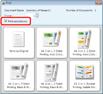 Annotations added with something other than Desktop Editor may be printed regardless of whether you select the [Print annotations] check box, depending on the type of annotation.