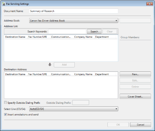 The [Fax Sending Settings] dialog box is displayed.