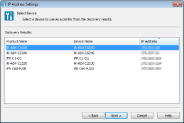 Click to select the device to monitor in the list. [Set Device Information] in the [IP Address Settings] dialog box is displayed when you click or double-click [Next].