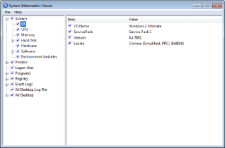 System Information Viewer saves only the environment information and log files for items whose check boxes are selected in the tree area and information display area.