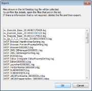 Saves as a text file and collects log files for only the items whose check boxes are selected in the information display area.
