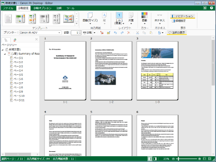 Desktop Editorは、文書に印刷体裁を追加したり、文書を加工/編集したりできます。また、文書を結合したり、ページを並べ替えたり、不要なページを削除したりできます。IWB形式(*.iwb)で保存すると、印刷体裁を文書と一緒に保存できます。