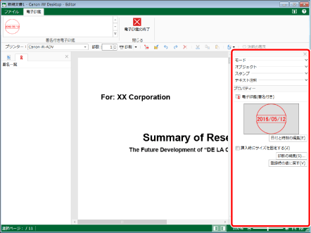 電子印鑑モードの起動中は、詳細ウィンドウに表示される注釈のボタンをクリックできません。