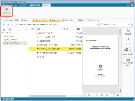 (プレビュー)をクリックします。Desktop Browserのリボンにコマンドが表示されていない場合は、次を参照して表示させてください。
