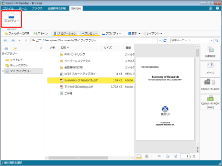 ツールバーのツールボタンでも同じ操作ができます。Desktop Browserのツールバーにツールボタンが表示されていない場合は、次を参照して表示させてください。