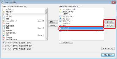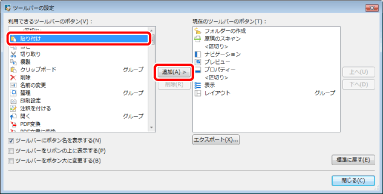 [現在のツールバーのボタン]でボタンを選択したあと、[追加]をクリックした場合は、選択したボタンの下に[利用できるツールバーのボタン]で選択したボタンが追加されます。