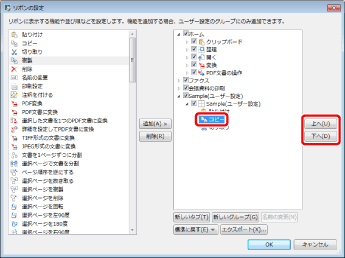初期設定で表示されているタブのグループ内のコマンドは、並び順を変更できません。