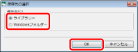 新規作成したIWB文書の場合、[保存先の選択]ダイアログボックスが表示されます。詳細は次を参照してください。