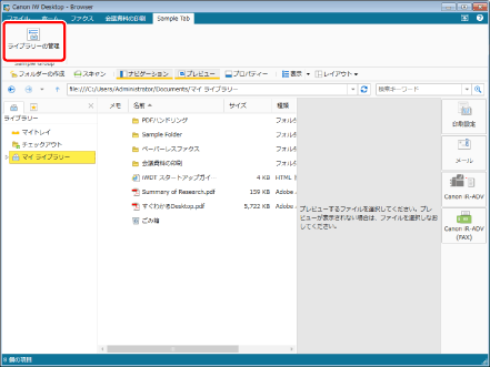 [ライブラリーの管理]ダイアログボックスが表示されます。