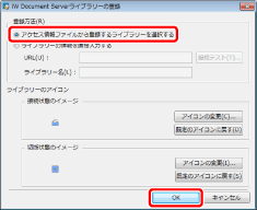 [iW Document Serverライブラリーの登録]ダイアログボックスが表示されます。