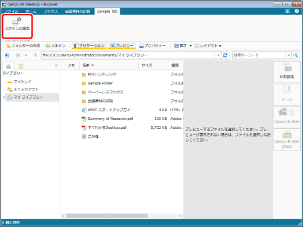 ツールバーのツールボタンでも同じ操作ができます。Desktop Browserのツールバーにツールボタンが表示されていない場合は、次を参照して表示させてください。