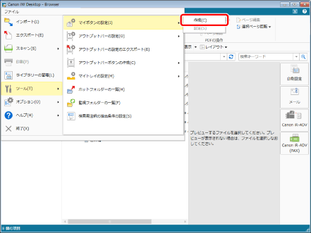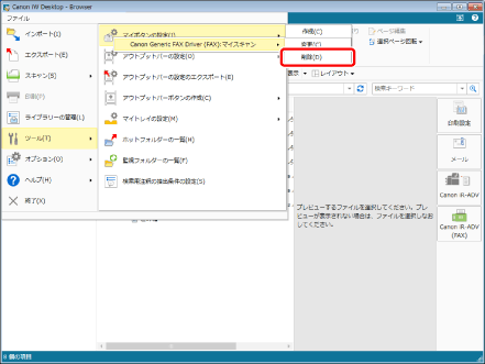 登録したマイボタンはDesktop Browserから削除されますが、imageRUNNER ADVANCEのカスタムメニューのボタンは削除されません。