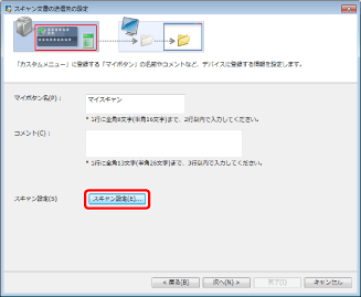 [スキャン設定]ダイアログボックスの設定項目として、デバイスで設定可能な項目のうち、よく使用する項目が準備されています。