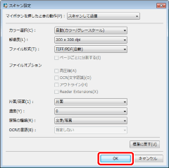 スキャンの解像度を[300 x 300 dpi]に設定します。