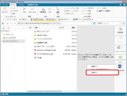 Desktop Browser画面のアウトプットバーに登録されているアプリケーションアウトプットボタンを削除します。