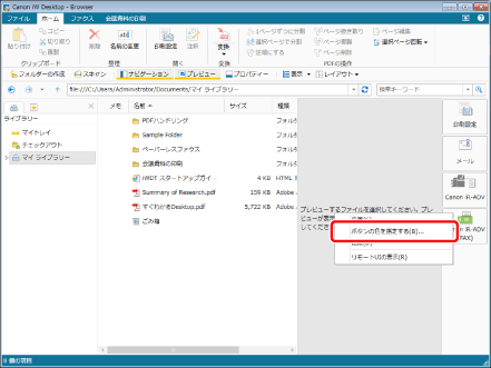 ツールバーのツールボタンでも同じ操作ができます。Desktop Browserのツールバーにツールボタンが表示されていない場合は、次を参照して表示させてください。