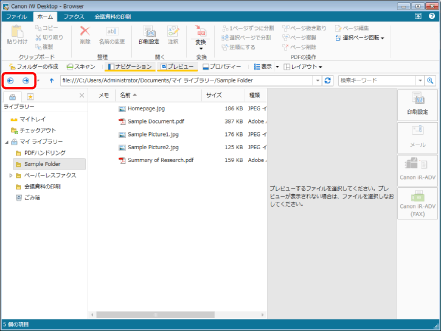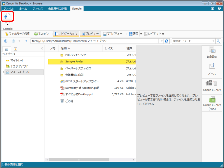 (プロパティー)や (プレビュー)が表示されていない場合は、次を参照して表示させてください。ツールバーのツールボタンでも同じ操作ができます。Desktop Browserのツールバーにツールボタンが表示されていない場合は、次を参照して表示させてください。