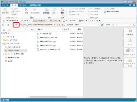 ファイルリストビューウィンドウの何も表示がない領域からマウスをドラッグして、複数の文書/フォルダーを選択できます。ただし、この操作時は[Shift]キーは使用できません。