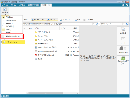 (並べ替え)をクリックして、[詳細表示の設定]を選択します。