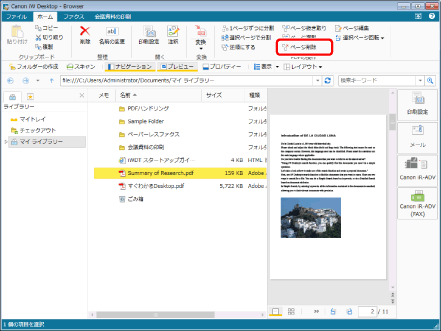 暗号化されていないPDF文書のみ、選択ページの削除ができます。