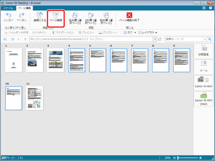 サムネイル表示時に[Shift]キー、または[Ctrl]キーを押しながらページをクリックすると、複数のページを選択できます。
