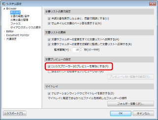 [システム設定] > [Browser] > [表示設定] > [[エクスプローラー]のプレビューを有効にする]