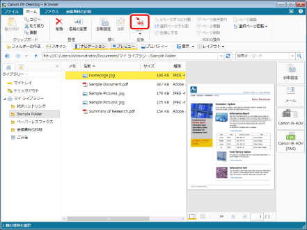 ツールバーのツールボタンでも同じ操作ができます。Desktop Browserのツールバーにツールボタンが表示されていない場合は、次を参照して表示させてください。
