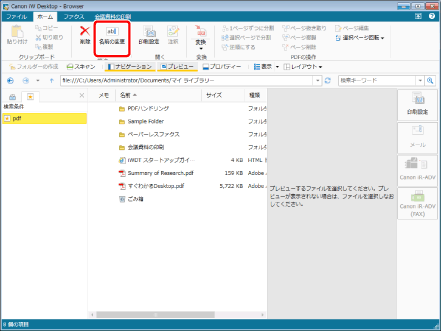 名前を変更する検索条件を選択して、[名前の変更]をクリックします。