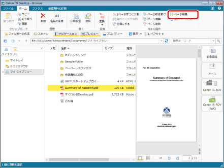 ツールバーのツールボタンでも同じ操作ができます。Desktop Browserのツールバーにツールボタンが表示されていない場合は、次を参照して表示させてください。