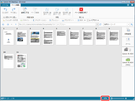 ホイールマウスを使用している場合、プレビューウィンドウ上で[Ctrl]キーを押しながらホイールを回転すると、表示倍率を10%ごとに変更できます。前回転で拡大表示、後回転で縮小表示できます。