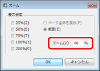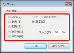 1%単位で表示倍率を指定できます。上限(200%)、または下限(5%)を超えた数字が入力された場合は、指定した表示倍率に最も近い表示可能な倍率で自動的に表示されます。小数点入力が行われた場合は、自動的に入力前の値が設定されます。