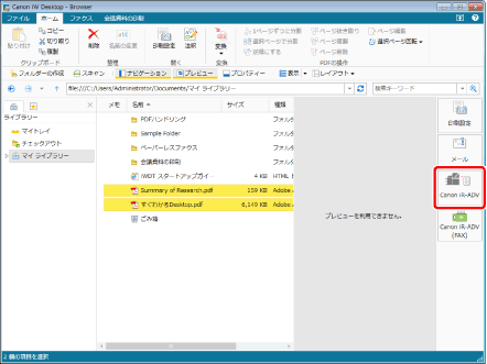 フォルダーを選択した場合、フォルダー内の文書が印刷されます。