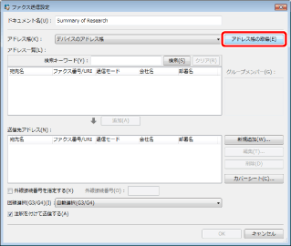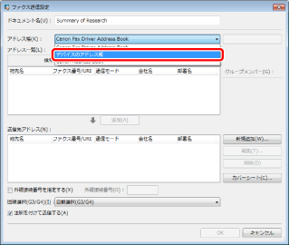 また、IPファクス用のアドレスをimageRUNNER ADVANCEのアドレス帳から取得するには、imageRUNNER ADVANCEにバージョン3.1.0以降のDesktop Communicatorがインストールされている必要があります。バージョンが3.0.0以前の場合、宛先名だけが取得されます。
