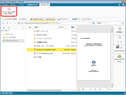 ライブラリー、ごみ箱、ショートカット(*.iwl/*.iwlf)はショートカットを作成して添付できません。また、ごみ箱やマイトレイの中にある文書はショートカットを作成して添付できません。