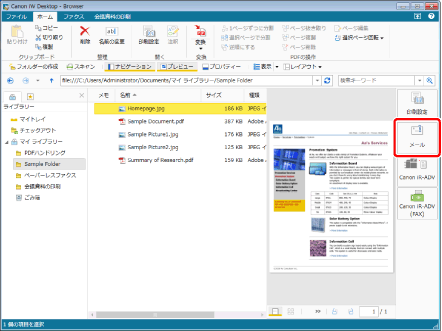 ショートカット(*.iwl/*.iwlf)、ライブラリー、フォルダー、ごみ箱、およびごみ箱の中にある文書はPDF文書に変換して添付できません。