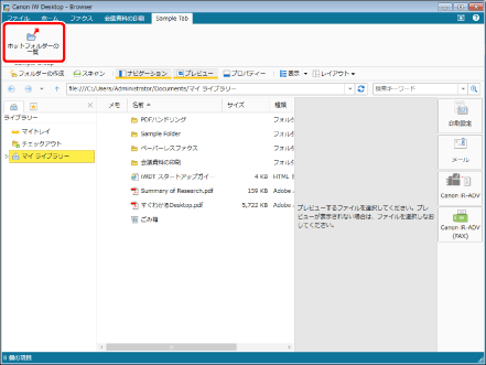 (ホットフォルダーの一覧)をクリックします。