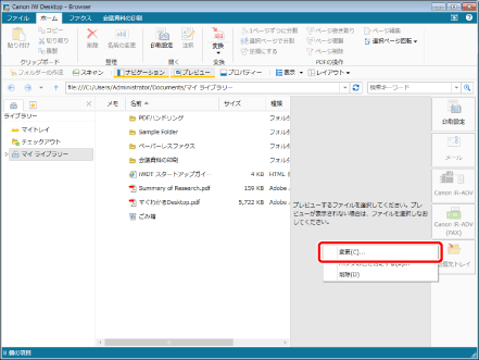をクリックして、[変更]を選択しても同じ操作ができます。リボンやツールバーにボタンが表示されていない場合は、次を参照して表示させてください。 |