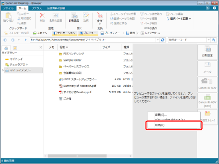 (送信先トレイアウトプットボタン)を右クリックして、[削除]を選択します。
