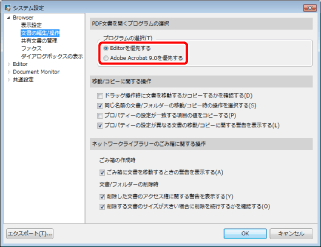 [Editorを優先する]を選択した場合、Desktop BrowserでPDF文書を扱う場合に次のような動作が可能になります。