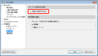 [システム設定] > [共通設定] > [表示設定] > [拡張子を表示する]