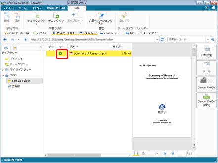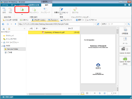 個人ライブラリー/ネットワークライブラリーに保管されている文書はチェックアウトできません。
