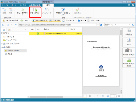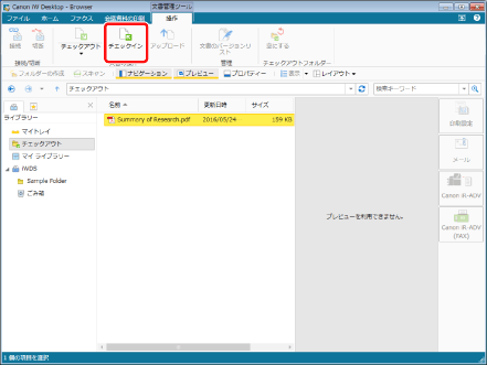 未接続のDocument Serverライブラリー内の文書を選択する場合は、ライブラリーへの接続が必要です。接続方法については、次を参照してください。