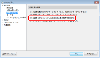 [システム設定] > [Browser] > [共有文書の管理] > [文書をダブルクリックした場合は読み取り専用で開く]