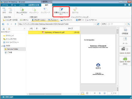 ツールバーのツールボタンでも同じ操作ができます。Desktop Browserのツールバーにツールボタンが表示されていない場合は、次を参照して表示させてください。